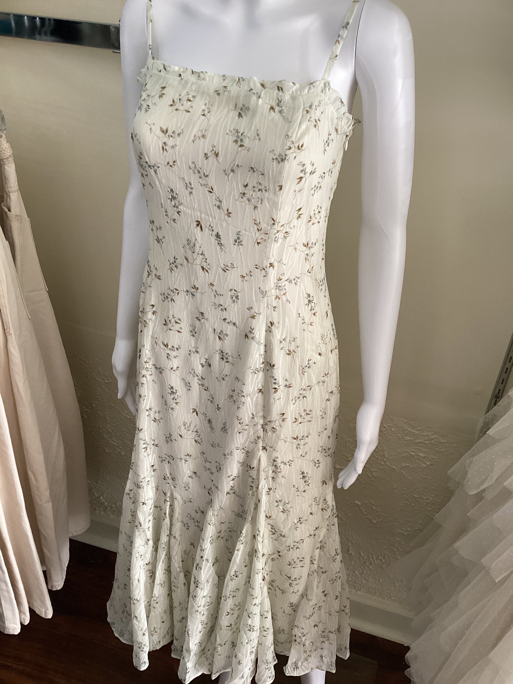 Ivory Dress with blue/green floral print