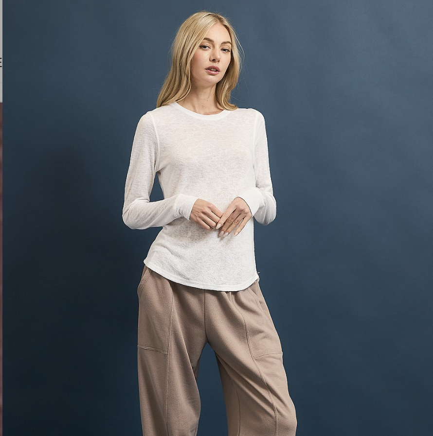 HACCI SLUB CREW NECK FITTED LONG SLEEVE TOP