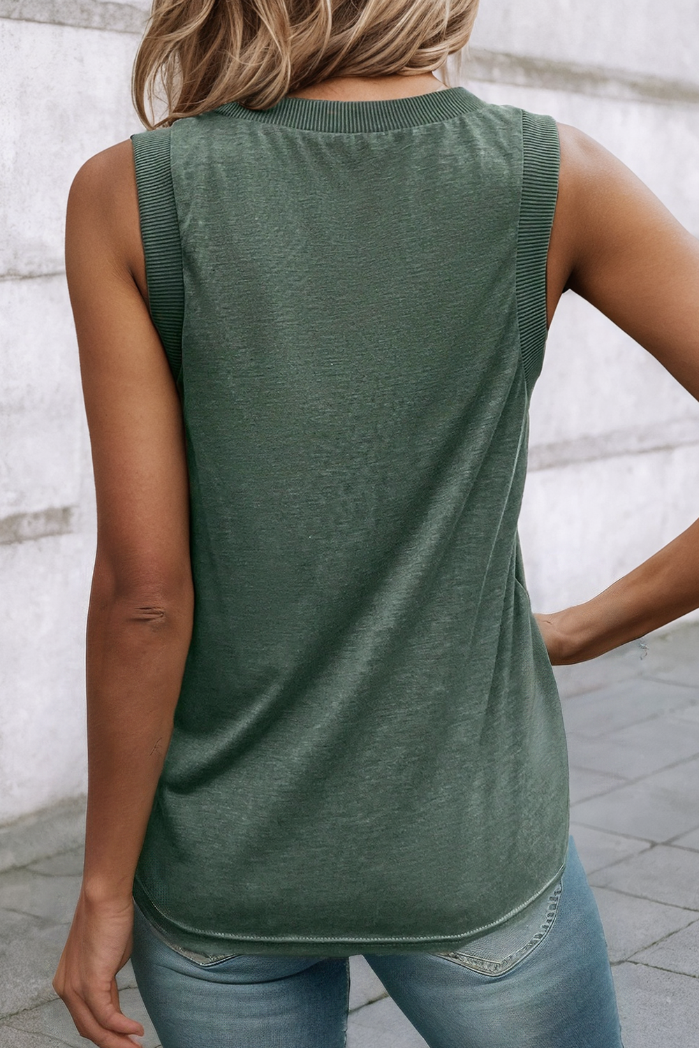 Featuring a ribbed V-neck and a cool sleeveless silhouette, it's a versatile piece that pairs effortlessly with anything in your wardrobe 🌟